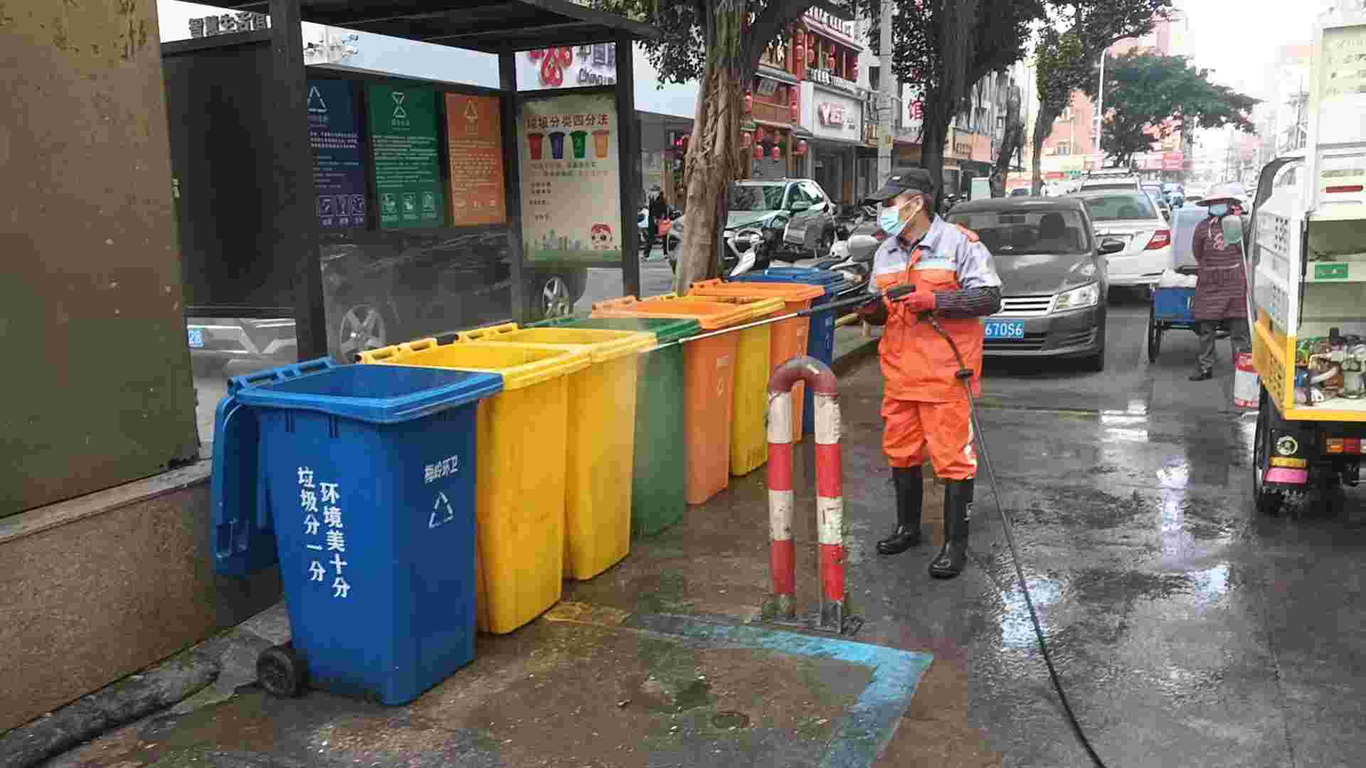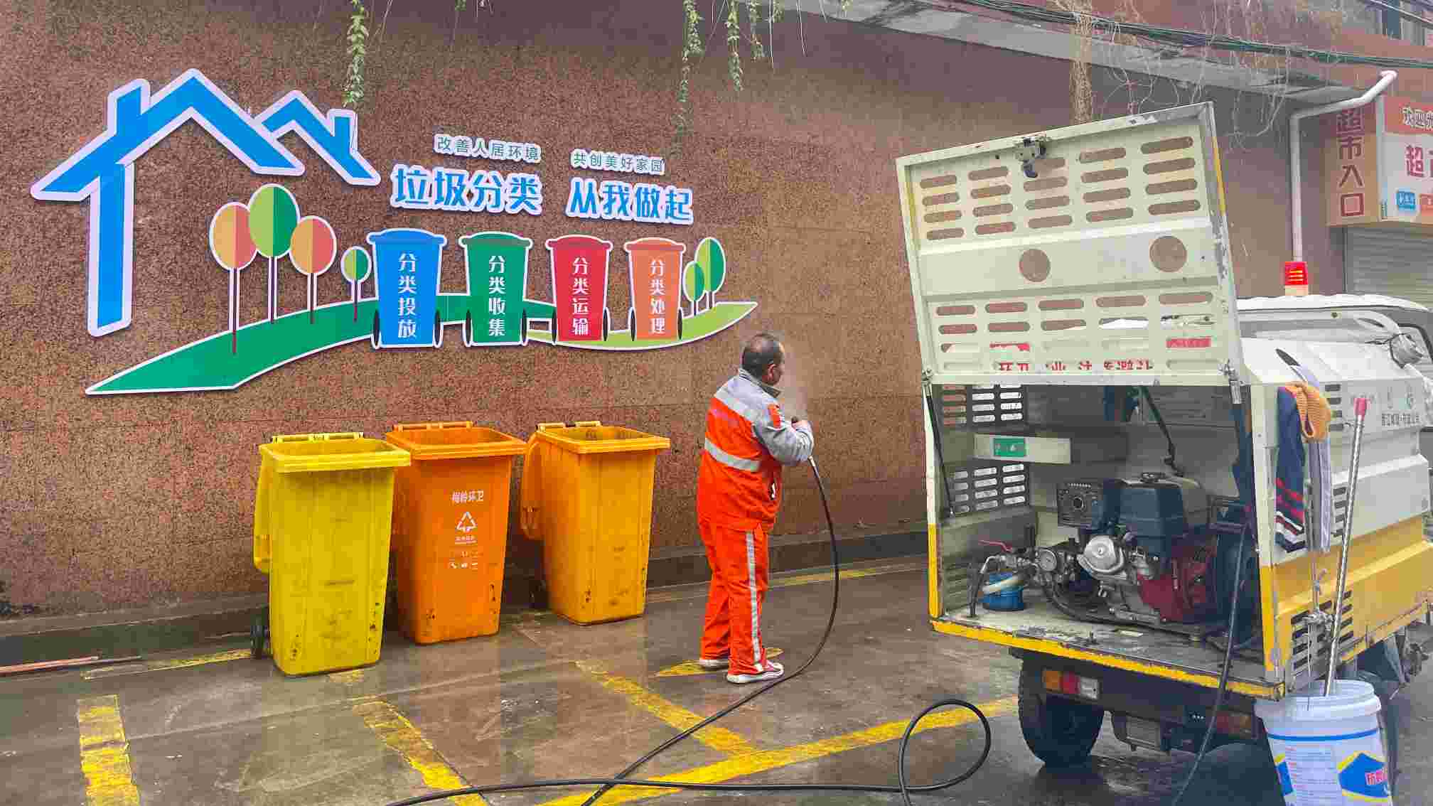 在整治過程中,工作人員嚴格按照“一掃、二擦、三洗、四消、五擺放”的步驟進行操作,利用高壓水槍或清洗設備對垃圾桶和周邊進行全方位沖洗,確保內部和外部都干凈整潔,防止異味產生,周邊無積水外溢,并對破損老舊的垃圾桶及時進行維修、更換。在開展行動的同時,工作人員還向居民群眾普及垃圾分類和環保知識,鼓勵居民群眾養成良好衛生習慣,攜手維護美麗居住環境。居民群眾積極響應,增強了他們的環保意識和責任感。