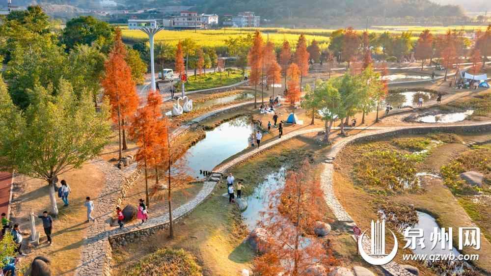 一段時間來,永春縣石鼓鎮(zhèn)濕地公園的落羽杉林“換上紅裝”,在冬日暖陽的照耀下熠熠生輝,與周邊的鄉(xiāng)村、田園、河流等自然和人文景觀相映成趣、美不勝收,吸引眾多游客前來觀賞、游玩。