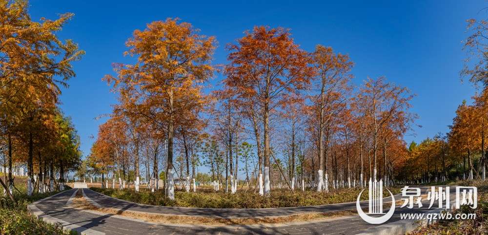 泉州臺商投資區(qū)南北大道旁的海絲生態(tài)公園里,落羽杉小樹林色彩斑斕,帶來冬日的別樣風(fēng)景。(陳起拓 攝)