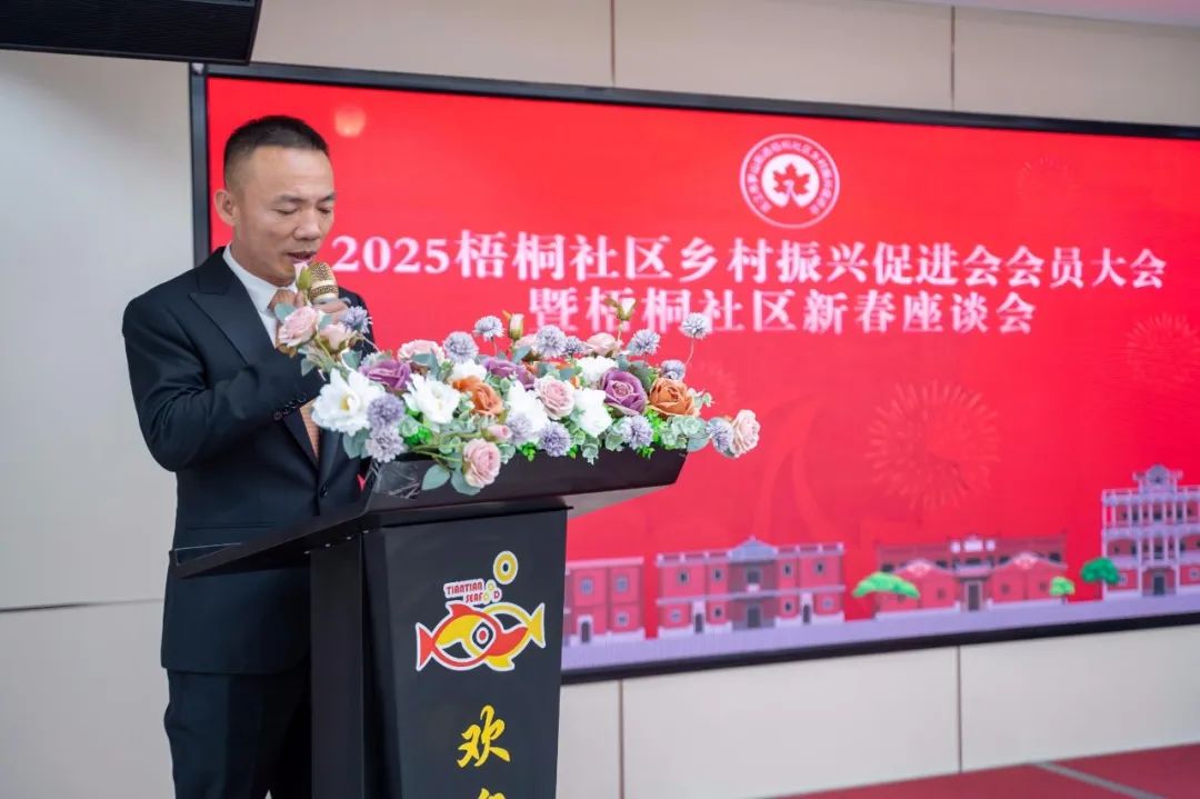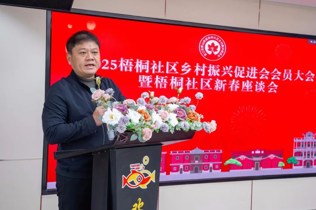 2月17日,梧桐社區召開2025年鄉村振興促進會會員大會暨新春座談會。羅山街道黨工委書記曾煥鐵、人大工委副主任莊躍聰、辦事處副主任蔡繼智,與梧桐社區海內外僑胞、高層次人才和企業家代表歡聚一堂,暢敘情誼,回顧過去,展望未來,同迎新春,共謀新篇。