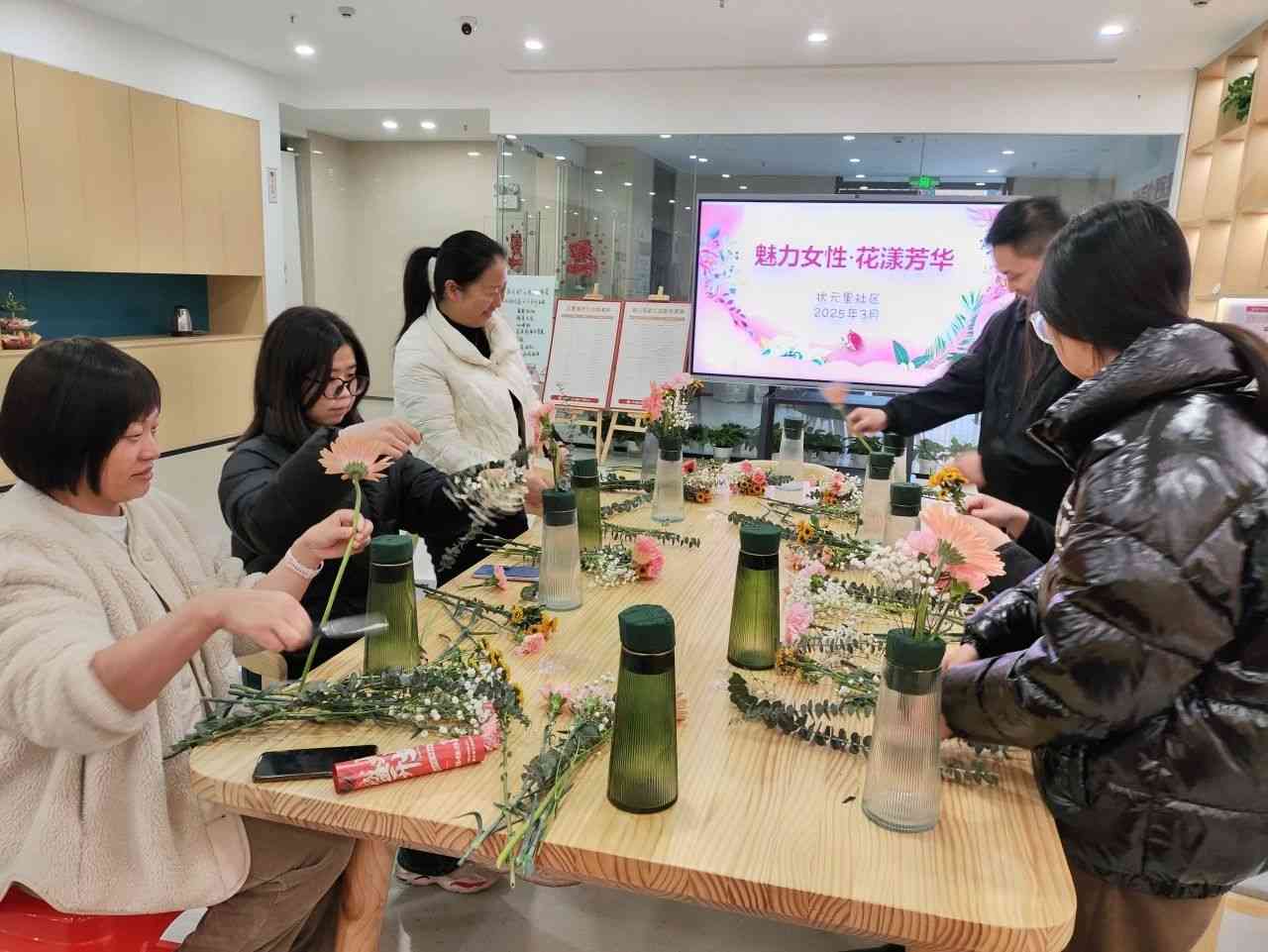 三八婦女節是屬于廣大女性的節日,為豐富社區女性的精神文化生活,增強社區凝聚力,促進鄰里和諧,狀元里社區攜手轄區各網格物業開展三八婦女節系列活動,通過贈送玫瑰花、親手制作插花作品、茶話會等多種互動方式讓社區女性居民度過一個溫馨的節日。