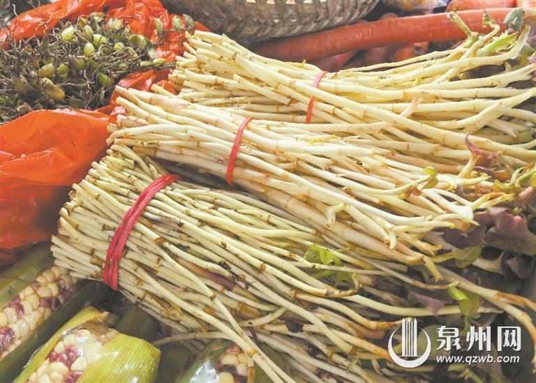 記者走訪了市區幾家菜市場,發現有不少菜攤售有“春節限定”鮮菜。“魚腥草的根就是折耳根,買的人最多,但多數是四川、湖南一帶的外地人買,本地人較少吃。”在豐澤區東美農貿市場,四川來的羅先生賣菜二十多年了,在他的菜攤上,魚腥草分三種:菜根、菜葉和根葉。“菜根一斤七八元,葉菜一斤十元,根葉都有的一斤十七元,賣得最貴,因為這種最嫩。”羅先生介紹,折耳根一般是涼拌,吃個爽脆的口感。