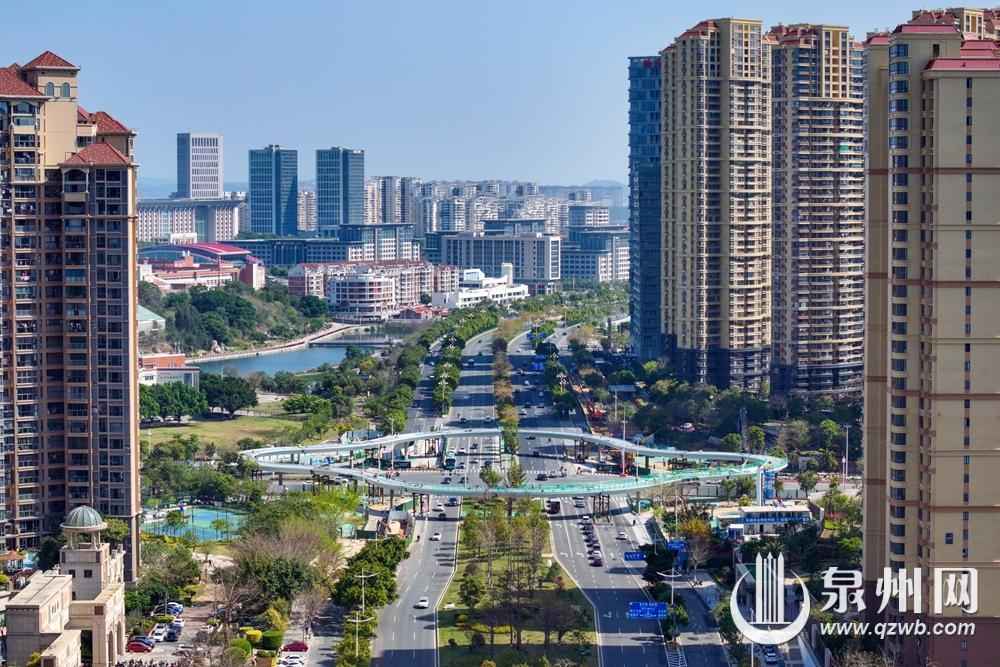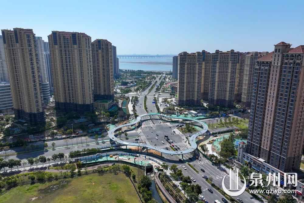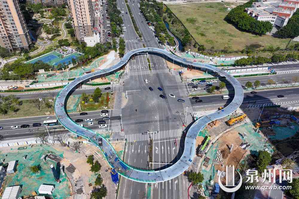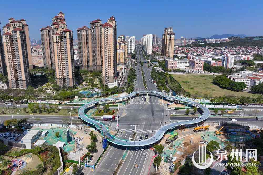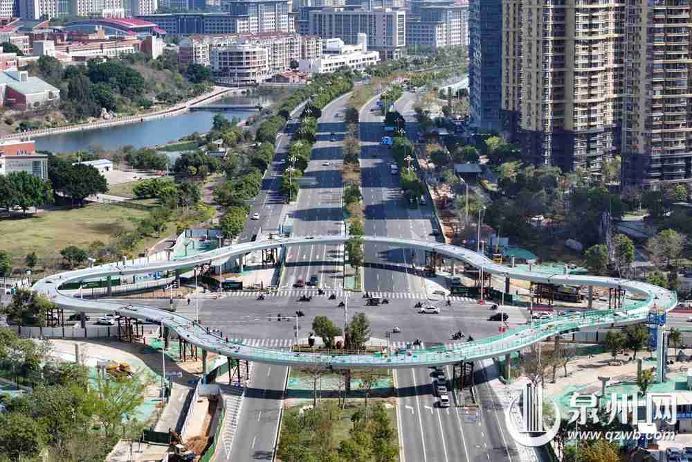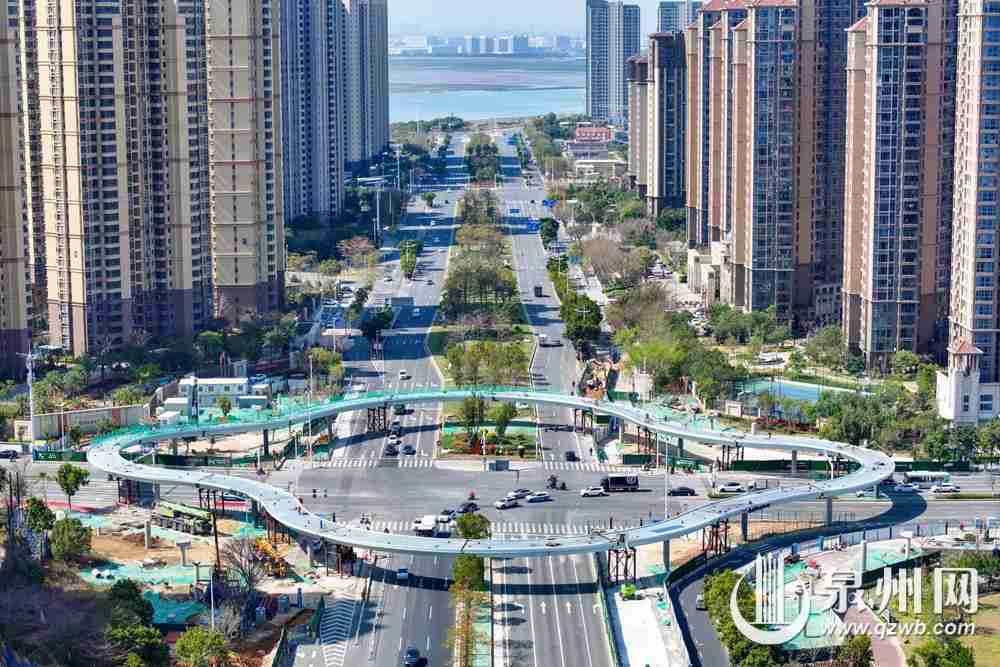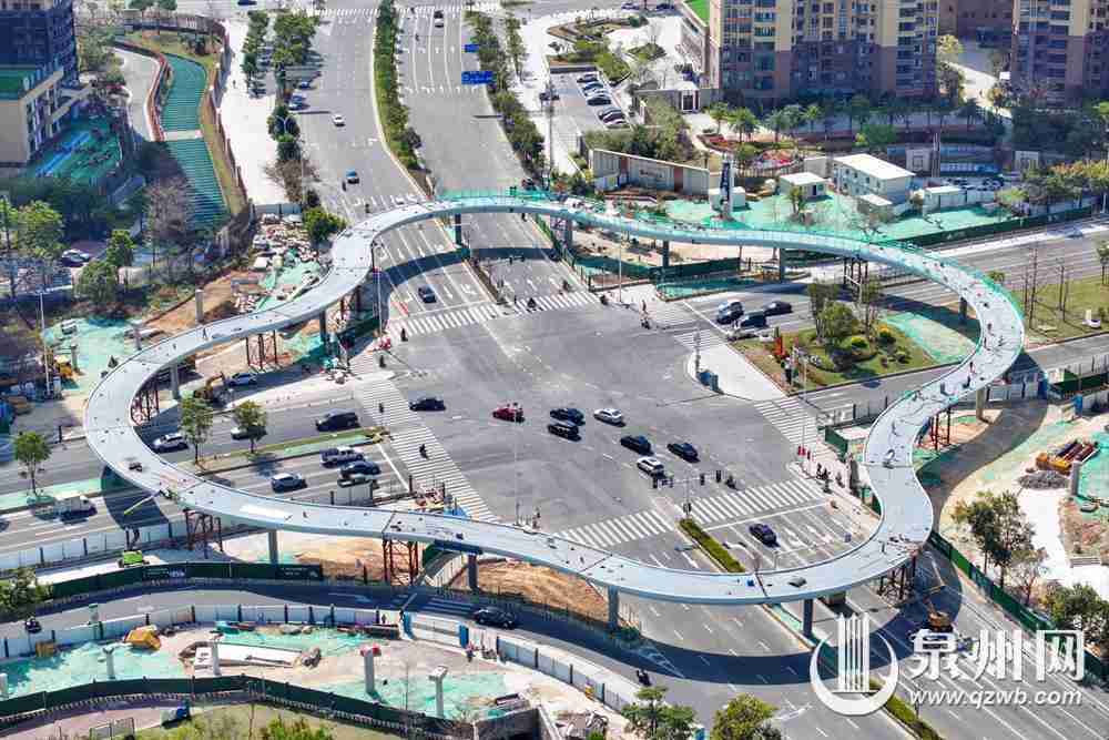 圖為3月21日上午拍攝的泉州市區(qū)東海大街至中央商務(wù)區(qū)立體步行連廊工程(東海四瓣花天橋)圖片。(融媒體記者陳起拓 攝)