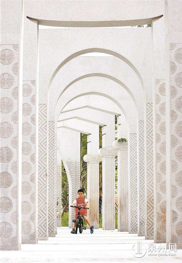 汀洲園內新增的兒童游樂區成為親子互動的歡樂天地,色彩鮮艷的滑梯、趣味十足的沙坑、充滿童趣的蹺蹺板等設施一應俱全,吸引眾多家庭前來共度歡樂時光。園區內的“海絲共融”雕塑區與彩虹橋更是吸睛亮點,有望成為新晉網紅打卡地。踏進雕塑區,37個藝術石拱門排列成時光長廊,漫步其中,仿佛穿越歷史長河。