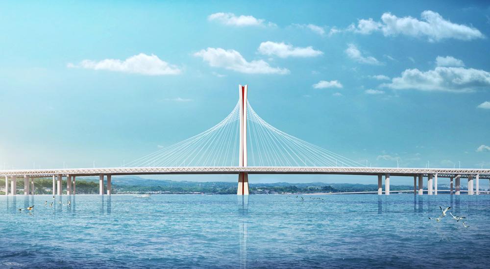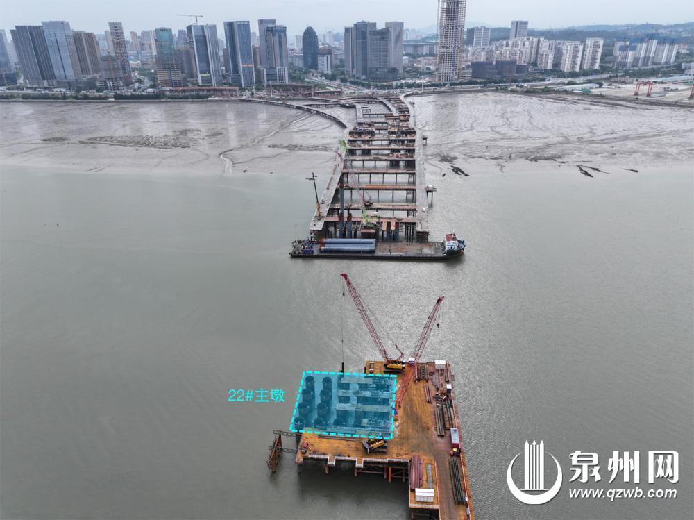 百崎通道由泉州交發集團權屬路橋集團負責管理,中交集團權屬中交二航局、中交一公局承建。主線起于泉州臺商投資區百東大道與洛沙大道交叉口,終于豐澤區豐海路與府東路交叉口,路線全長3.416公里。項目包括一座跨海特大橋、2座互通式立交橋,總體呈東西走向,采用一級公路兼城市主干路標準,主線設計速度為60公里/小時,跨江段采用雙向8車道,互通區主線橋采用雙向6車道。通道建成后,將加強東海片區、臺商投資區等組團之間的緊密聯系,極大緩解后渚大橋的交通壓力,完善洛陽江兩岸城市組團交通干線網,助力泉州市構建泉州灣環灣核心區。