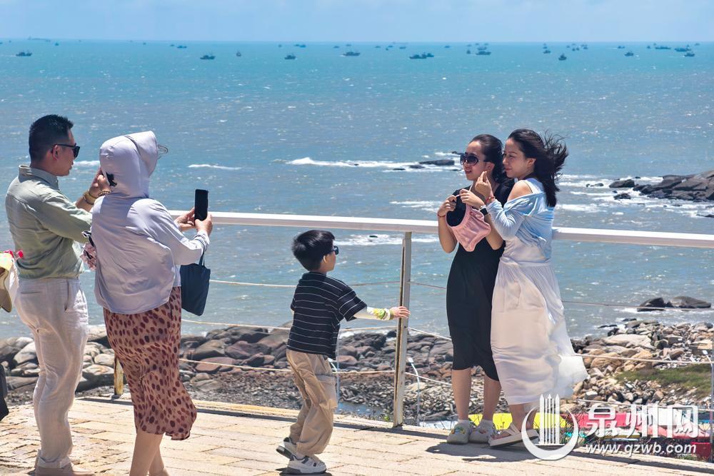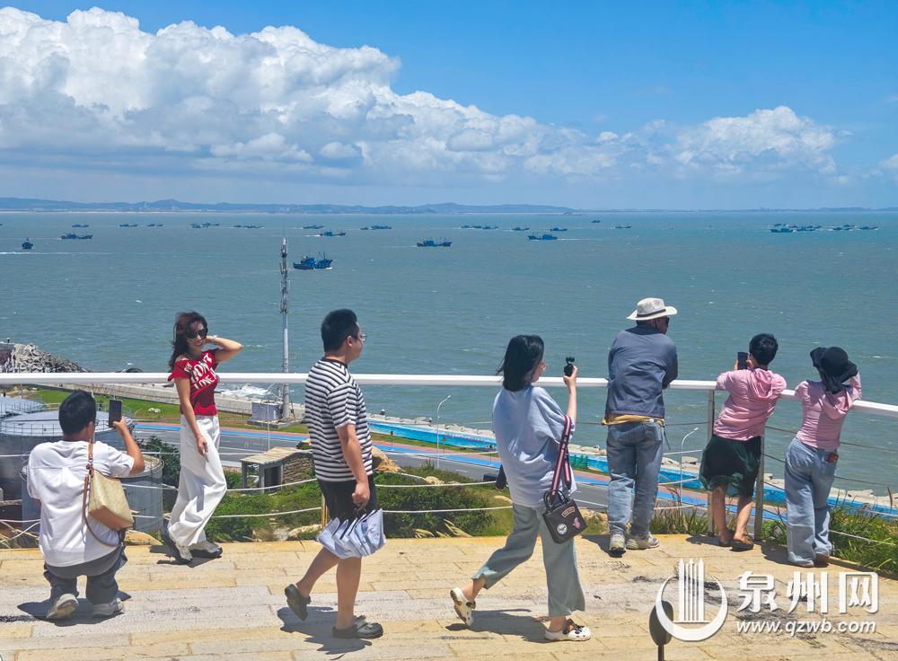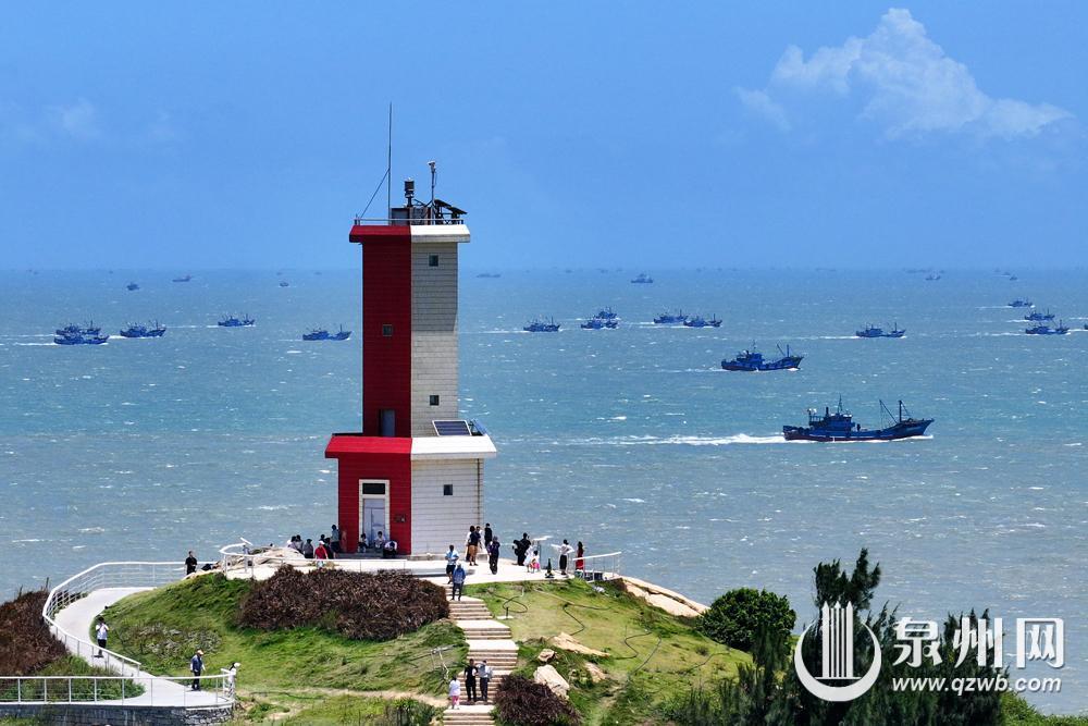 8月16日12時(shí)起,泉州市伏季休漁期結(jié)束,漁船紛紛出港,奔向遼闊的大海,開(kāi)始捕撈作業(yè)。在石獅,不少人登上燈塔公園高處,遙望漁船出海,拍下紀(jì)念美照。(融媒體記者陳起拓 攝)