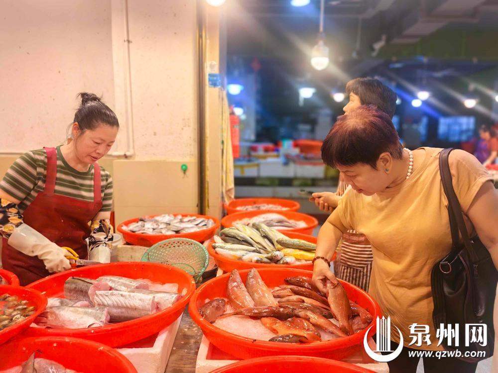 各大農貿市場同樣人頭攢動,繁忙異常。在鯉城區南菜市場的水產區,記者看到,各個攤位上東星斑、黃花魚、梭子蟹、海蝦、皮皮蝦等海鮮琳瑯滿目,新鮮又實惠,吸引了眾多市民駐足挑選。“這兩天開漁了,一進菜市場就看到滿滿的鮮貨,比前兩個月熱鬧多了。”家住津淮街的陳女士一邊挑選攤位上的螃蟹一邊笑著說。在攤主的熱情推薦下,她挑選了兩只肥碩的公蟹和一些新鮮的海魚,總共花費近千元。“這是今年第一次買這么多海鮮,想讓家人都嘗嘗開漁后的第一口鮮。”陳女士說。