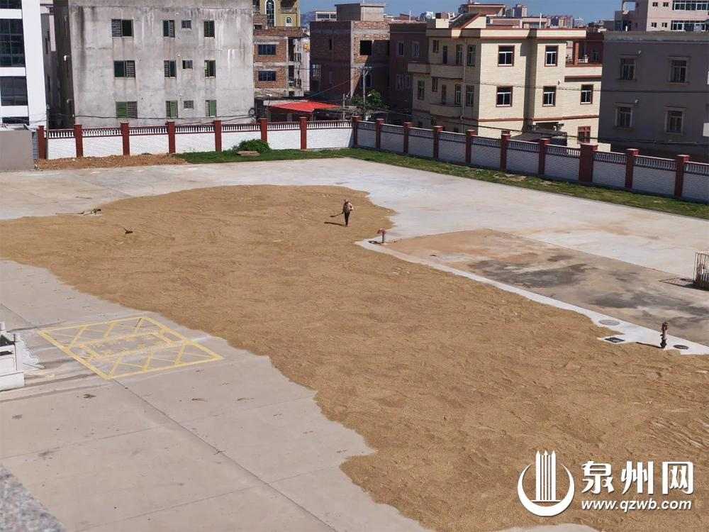 校園空地成了稻谷曬場