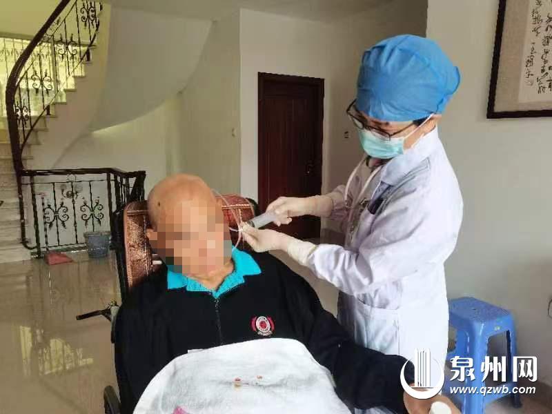 鯉城區金山社區慈心養老院80歲的洪老伯也是家庭病床醫療保障服務的受益者。因腦卒中后遺癥行動不便,洪老伯從去年至今已接受家庭病床上門服務近百次。每天下午,鯉城區海濱街道衛生服務中心的家庭醫生團隊會按時上門,為他進行針灸和肢體康復治療。“醫生每天都來,配合專業護理,老伴精神狀態挺好。”洪老伯的妻子林阿婆說。