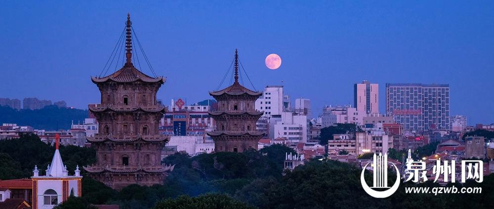 泉州中秋賞月之風(fēng)甚盛,圖為月映東西塔美景。(陳起拓 攝)