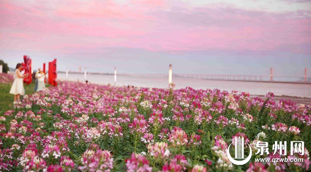 放眼望去,粉的、紫的、白的醉蝶花交織在一起,與遠處的大海和藍天相映成趣,宛如一幅絢麗多彩的油畫……這是泉州市區濱海公園新一季的花海——醉蝶花已如期盛放,期待您的到來!