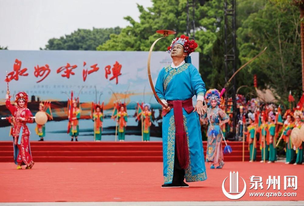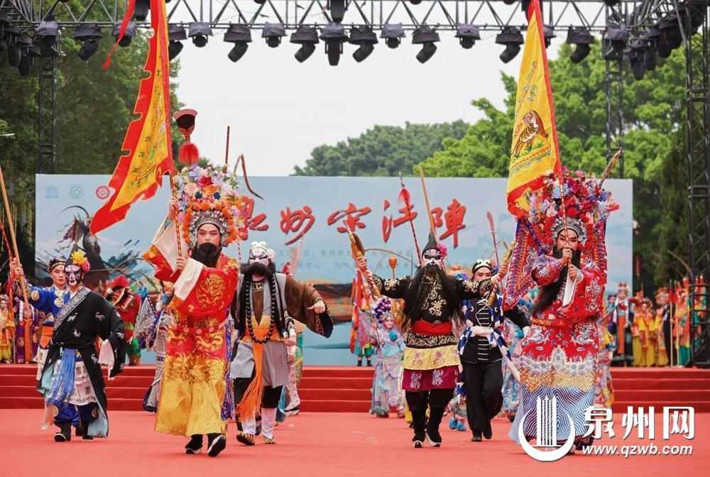 泉州宋江陣是源自明代抗倭時期的傳統武陣,2018年列入省級非物質文化遺產。其以《水滸傳》英雄為原型,表演者持兵器演練陣法,融合武術、戲劇和民俗儀軌,表演時陣勢磅礴、鑼鼓喧天,體現了閩南人崇文尚武的精神特質。值得一提的是,此次泉州文旅特邀潮汕英歌舞聯合演出,以跨區域藝術碰撞為演出注入新的血液。