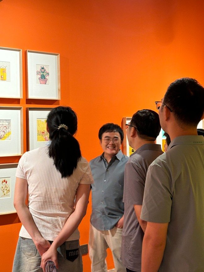 作為盒止美術館(公益美術館)館長,洪锽淮正在導覽他的個展“親愛的小H·親愛的生活”