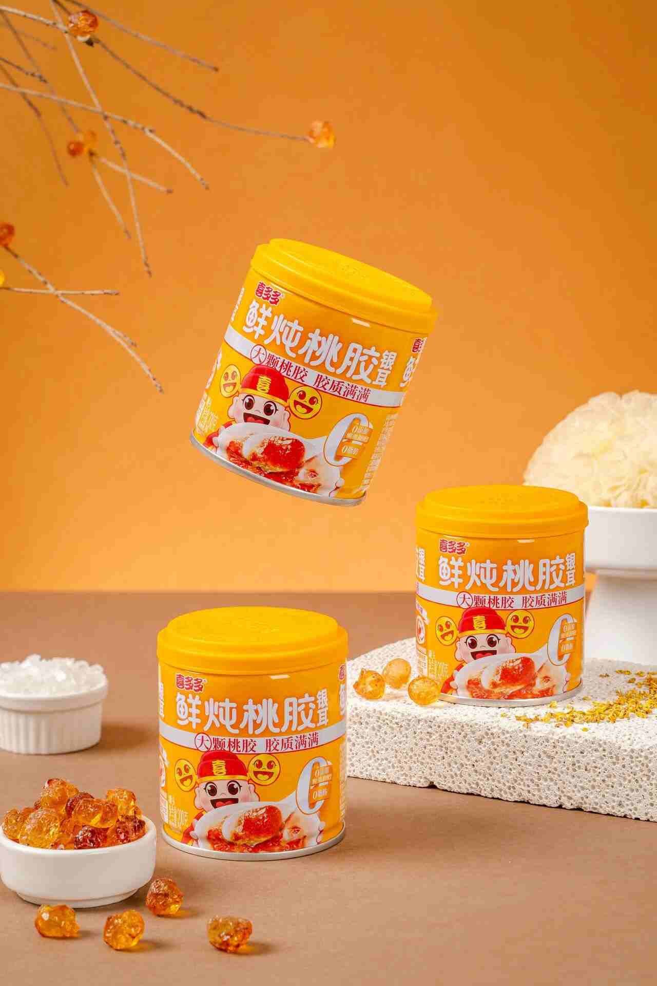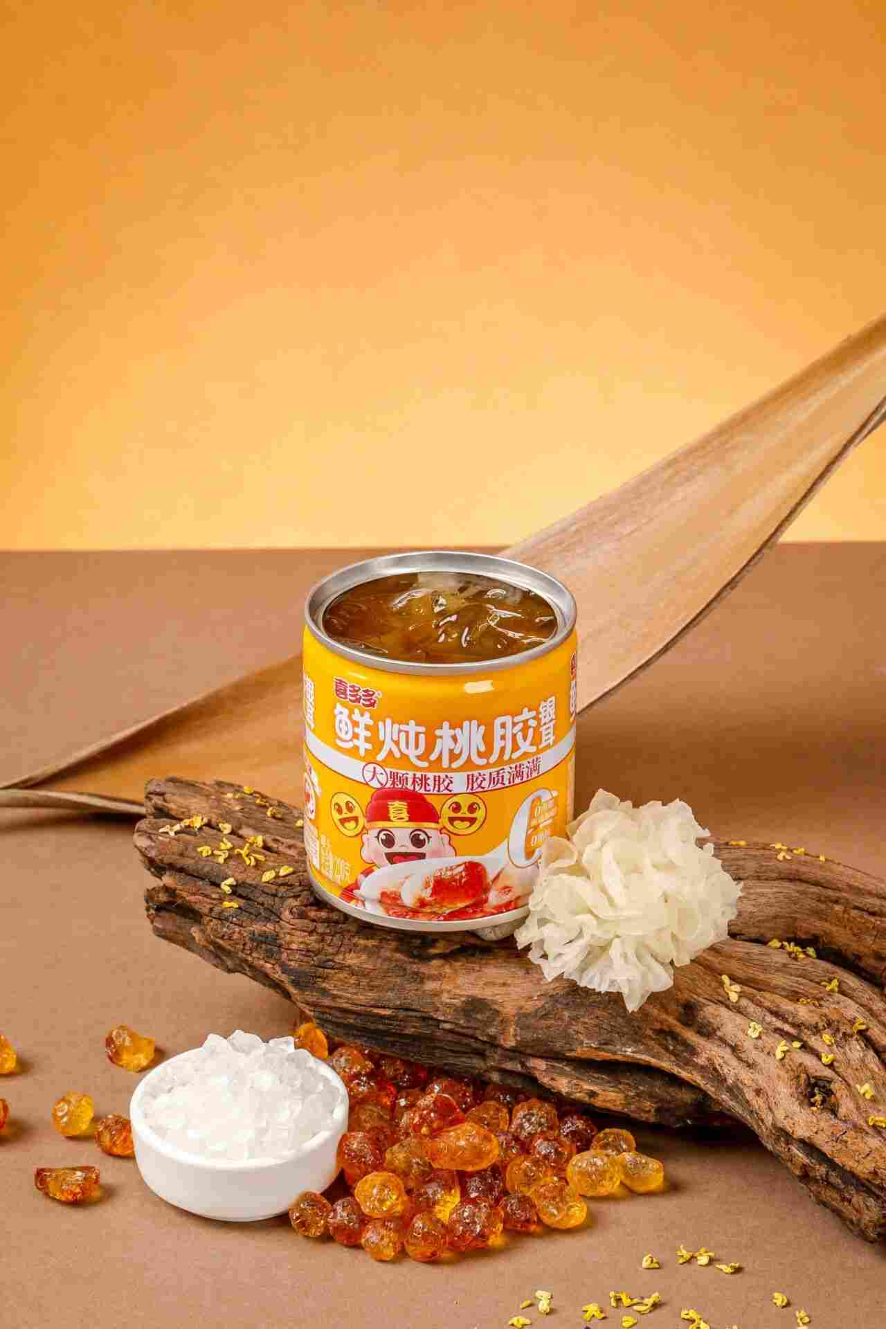 以技術創新為支撐,喜多多構建了從原料到生產的全鏈條清潔標簽體系。在配方設計上,六大系列產品徹底摒棄傳統罐頭中常見的增稠劑、香精及防腐劑,配料表僅包含基礎食材與天然甜味劑(如冰糖)。以熱銷的鮮燉桃膠銀耳罐頭為例,手工精選琥珀色大顆桃膠,搭配山泉水滋養的新鮮銀耳,生產過程中采用118℃瞬時高溫殺菌與無菌冷灌裝技術,在確保無菌安全的同時,最大限度保留膳食纖維與銀耳多糖活性。
