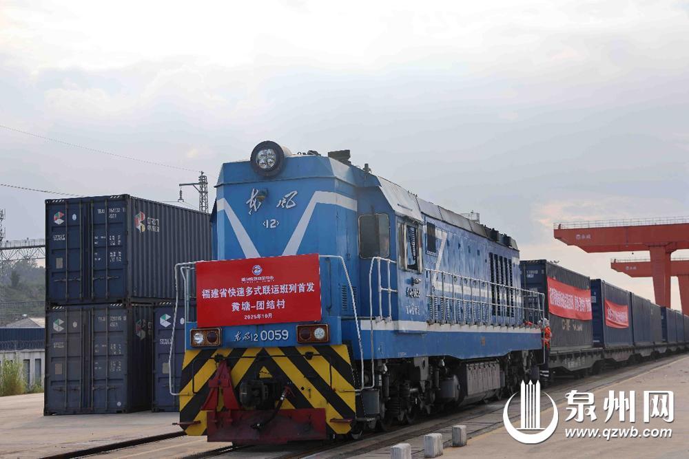 昨日,一列裝載25個集裝箱輕工產品的X8666次快速多式聯運班列從泉州黃塘鐵路貨場駛出,以最高120公里時速開往重慶團結村站,標志著福建省首列快速多式聯運班列正式開行。
