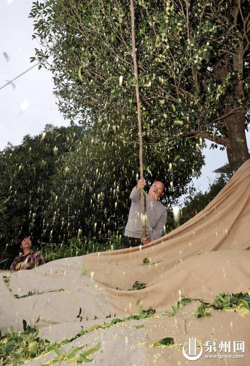 安溪縣虎邱鎮(zhèn)芳亭村,花農(nóng)們正忙著打收桂花。(張九強 攝)