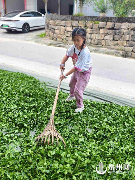 小朋友在安溪縣龍涓鎮(zhèn)錢塘村體驗曬青 (王世陽 攝)