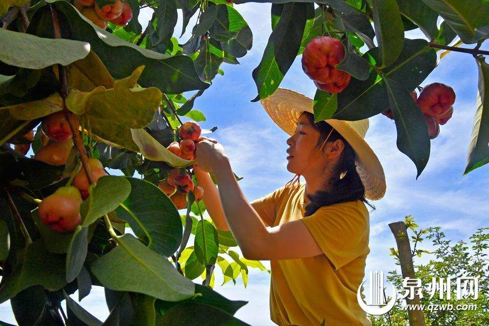 在泉港區(qū)涂嶺鎮(zhèn)的生態(tài)果園內(nèi),蓮霧果樹迎來采摘季。(洪坤澤 陳曉東 攝)