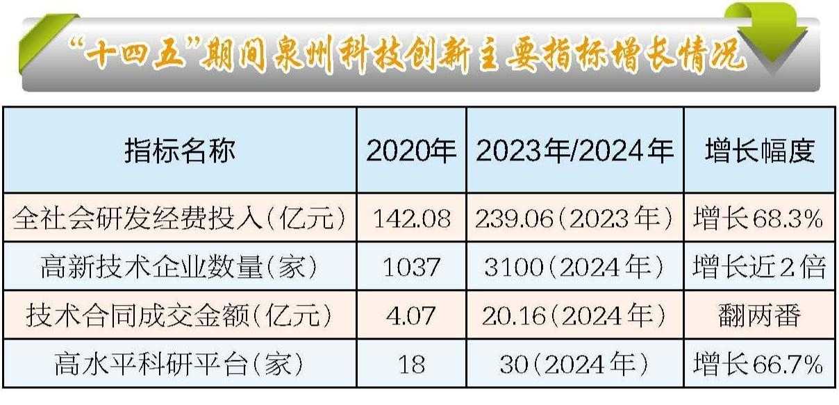 在此之下,泉州高水平科研平臺從2020年的18家增至2024年的30家,實現“重點產業全覆蓋、新興產業有支撐”。