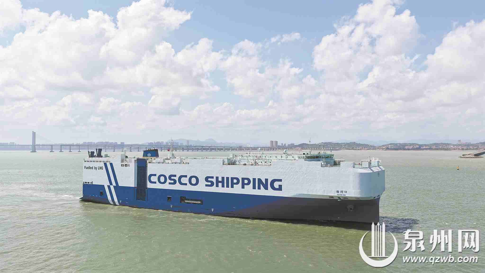 “海河口”號汽車滾裝船從泉州港石湖港區(qū)直航歐洲,打通了泉州與歐洲貿(mào)易往來的新通道。 (吳靜鋒 攝)