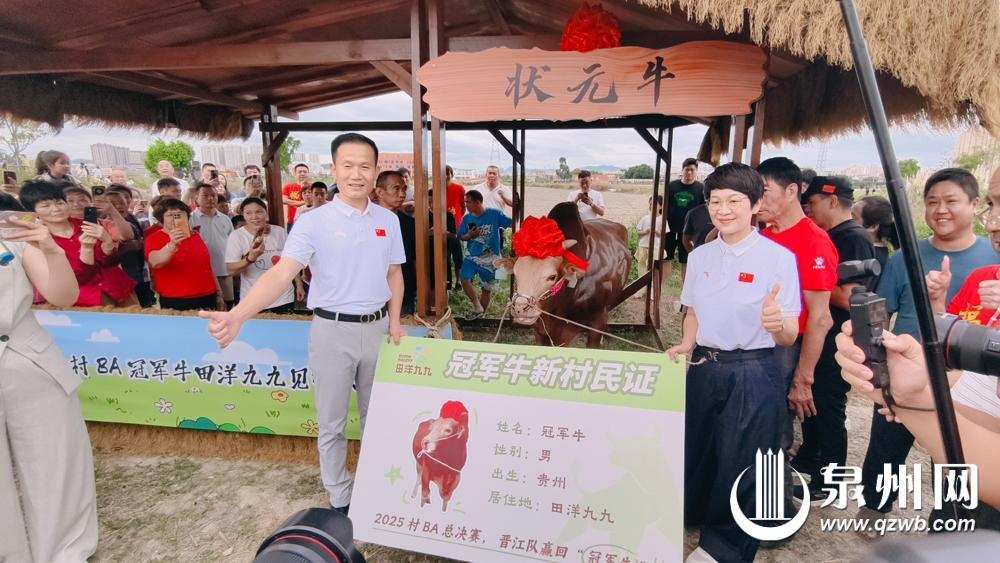 狀元故里來了“冠軍牛”,牛氣沖天。19日,承載著賽事榮譽與體育精神的“冠軍牛”安家晉江池店鎮田洋九九景區,全國“村BA”的冠軍榮耀在狀元故里書寫新篇,為鄉村文旅發展注入鮮活力量。