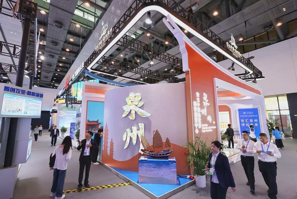 在展館內(nèi),一場以“海絲起點·古今交融·智創(chuàng)未來”為核心理念,海上絲綢之路為敘事起點,貫穿“過去—現(xiàn)在—未來”時間軸線,涵蓋“城市文化—產(chǎn)業(yè)實力—人才生態(tài)”三大內(nèi)容板塊的泉州故事正精彩上演。