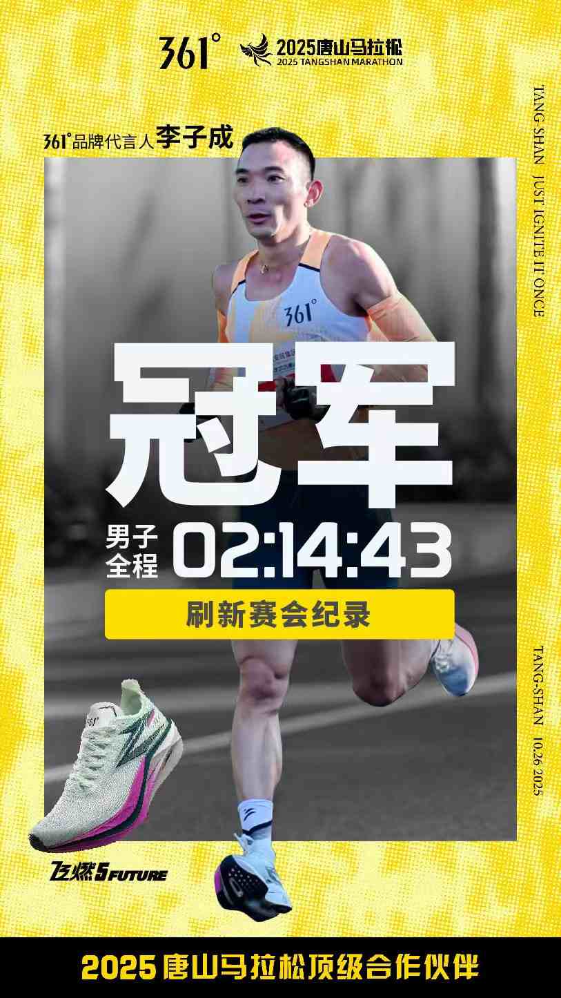 10月26日,2025唐山馬拉松正式鳴槍開跑。作為中國田協A1類金牌賽事,本屆唐馬吸引萬余名跑者齊聚唐山,以奔跑致敬城市精神。中國領先的體育用品品牌361°作為賽事頂級合作伙伴,以專業裝備與全方位服務為賽事保駕護航,其代言人與精英跑者表現卓越,一舉包攬全程與半程馬拉松的男、女子組四項冠軍。品牌代言人李子成更是以02:14:43的成績刷新男子賽事紀錄,充分彰顯361°在馬拉松領域的科技實力與戰略深耕。