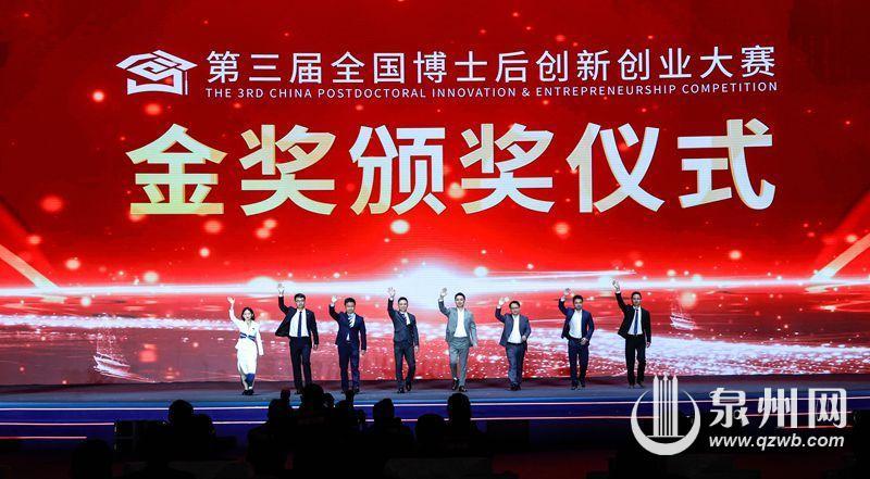 第三屆全國(guó)博士后創(chuàng)新創(chuàng)業(yè)大賽閉幕式金獎(jiǎng)?lì)C獎(jiǎng)儀式上選手登臺(tái)亮相(融媒體記者 林勁峰攝)